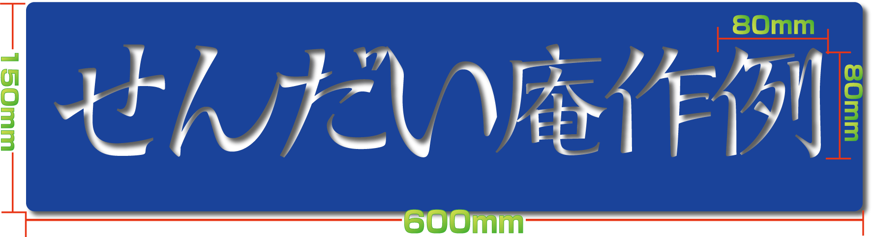 600mm×150mmのカッティングシートを用いて縦80mm・横80mmサイズの文字を7文字で作成した場合=2,230円(文字のみ)