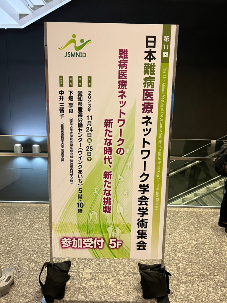 2023年11月24日(金)から11月25日(土)、愛知県産業労働センターにて『第11回 日本難病医療ネットワーク学会学術集会』が開催され、当センターからは2名が『仙台市のALS患者のコミュニケーション支援における入力装置の工夫』について、当センターにおける取り組みと成果を発表しました。