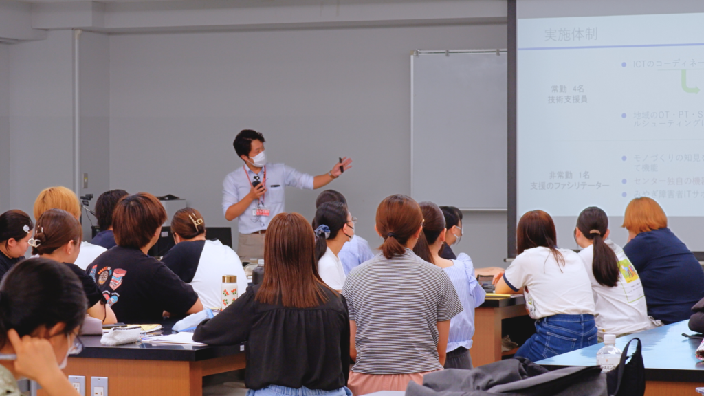 講義では、コミュニケーション支援についての話やコミュニケーション支援機器の体験を行いました。