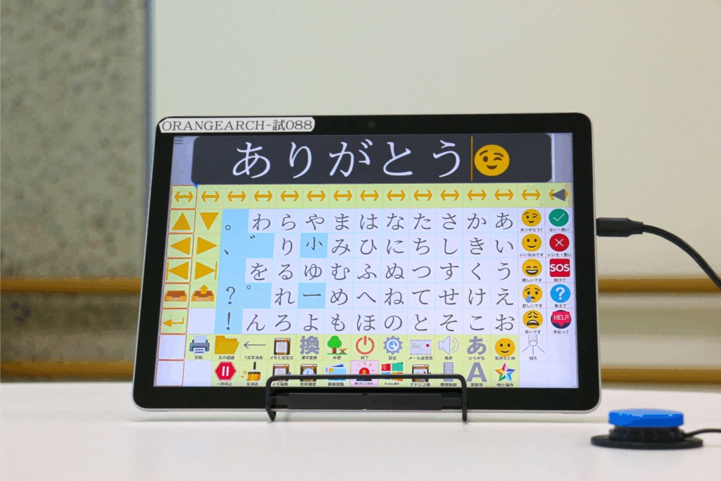 株式会社オレンジアーチ様より、eeyesタブレットタイプをお借りすることができました。タブレットタイプはノートタイプより軽く持ち運びやすく、必要に応じて画面をタッチすることで入力できることが特徴です。