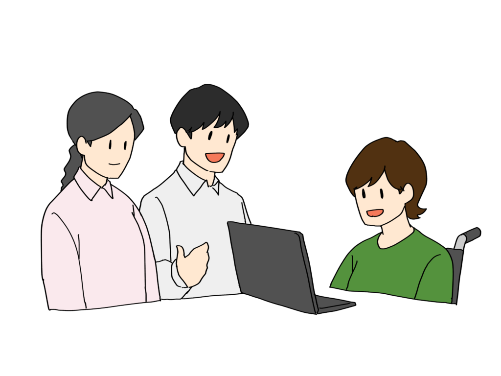 - 意思伝達装置及び入力装置(スイッチ)等に関する適合相談、試用機会の提供、設置、設定変更等の調整、調整後の使用状況確認